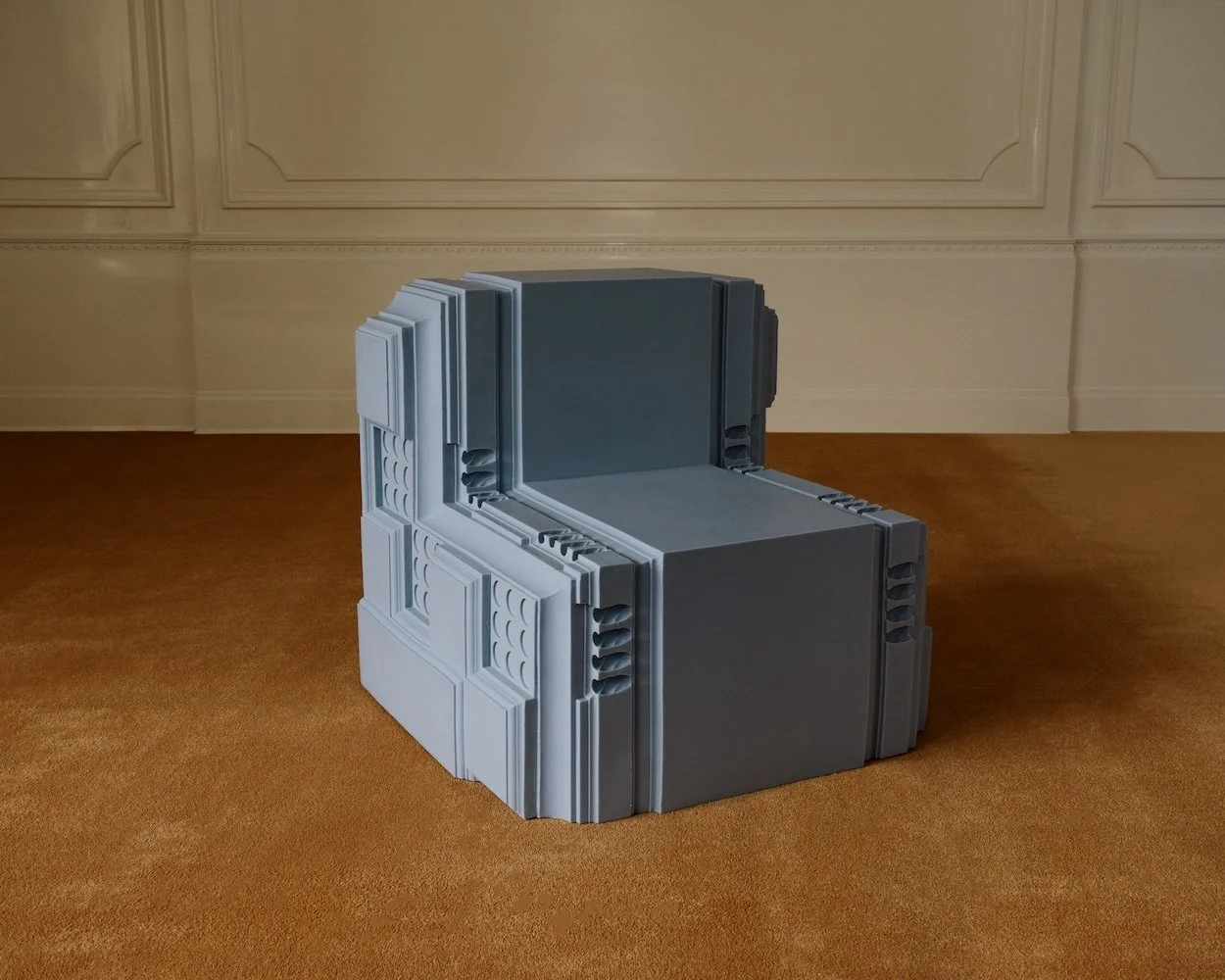 Back in my studio, these impressions became the starting point for a family of sculptural furniture pieces. Each work centers on a single architectural ornament from the house, reinterpreted across forms; mirrored, seated, carved, and stacked. By translating these historic details into soft, flexible materials, the collection challenges familiar ideas of structure and permanence. What was once rigid architecture becomes tactile, playful, and sensorial.
